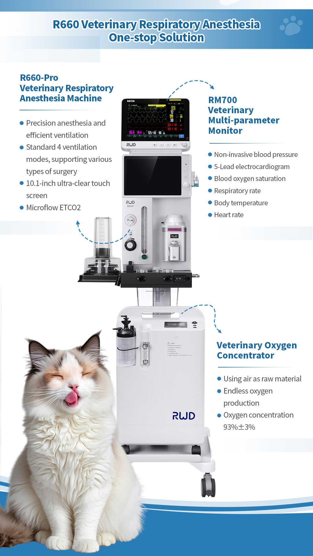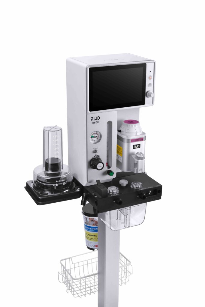 Nye R660 Pro anestesiapparat er utviklet med fokus på sikkerhet, nøyaktighet og brukervennlighet. Apparatet støtter anestesi for alt fra små gnagere til større dyr som hund, gris eller ape, og gir et moderne og pålitelig system for klinisk anestesi. Hvert apparat gjennomgår omfattende kvalitetskontroll fra fabrikk og benytter en presis fordamper for enten Isofluran eller Sevofluran. Med én-klikk-funksjoner og oversiktlig frontpanel gir R660 enkel betjening, samtidig som sikkerhetsfunksjoner som fargekodet trykkvarsling gir rask visuell kontroll. Apparatet er tilrettelagt for enkel integrasjon med monitor(R800T) og oksygenkonsentrator(ROC5/8).